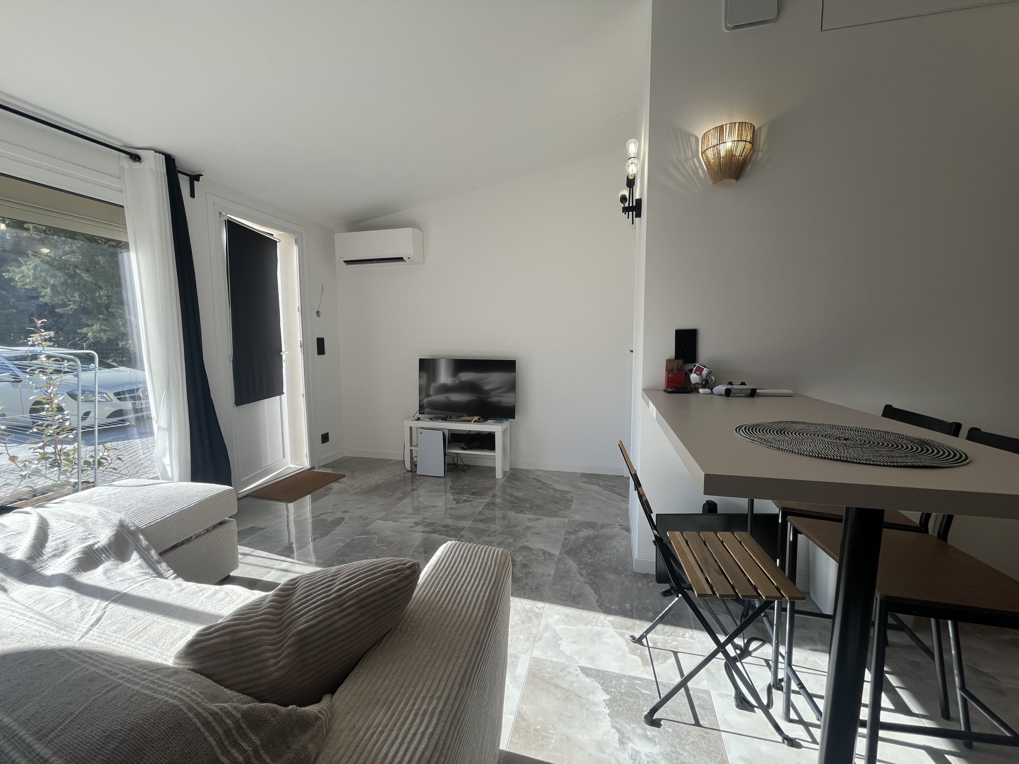 Une place de parking extérieure est incluse dans la location, un vrai plus au quotidien.